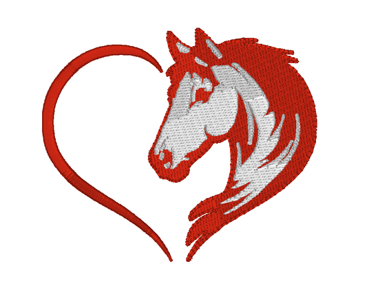horse heart embroidery design, filled heart, horse embroidery design, horse stitch, instant download, machine embroidery, DIGITAL FILE