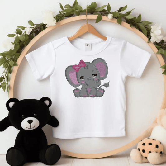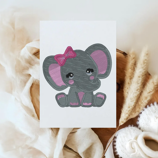 girl elephant, baby elephant, pink elephant with bow, elephant applique, instant download, machine embroidery, DIGITAL FILE